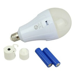 هم میتوانید از نور بسیار عالی آن استفاده کنید و هم اینکه همزمان کیت شارژ آن پر میشود و در زمان قطعی برق میتوانید از روشنایی آن استفاده کنید. با هر بار شارژ کامل ۳ الی ۴ ساعت قابل استفاده بوده و نور میدهد. این لامپ را میتوانید از سرپیچ باز کنید و باخود هر جایی که میخواهید ببرید و از نور آن استفاده کنید.