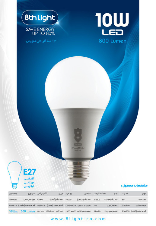 لامپ حبابی 10 وات نورهشتم