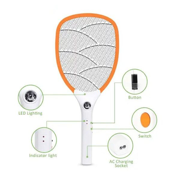 - دارای بدنه مقاوم پلاستیکی در فرم راکت با سه لایه فلزی سیمی و برد الکترونیکی داخلی