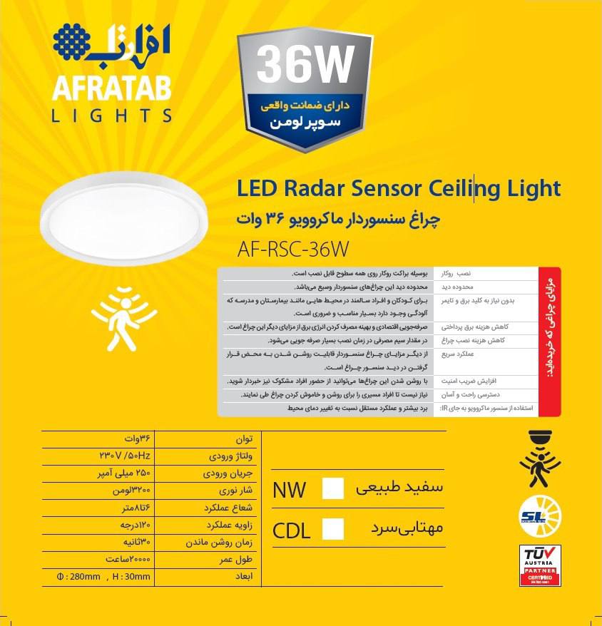 چراغ سقفی ال ای دی 36 وات روکار سنسوردار